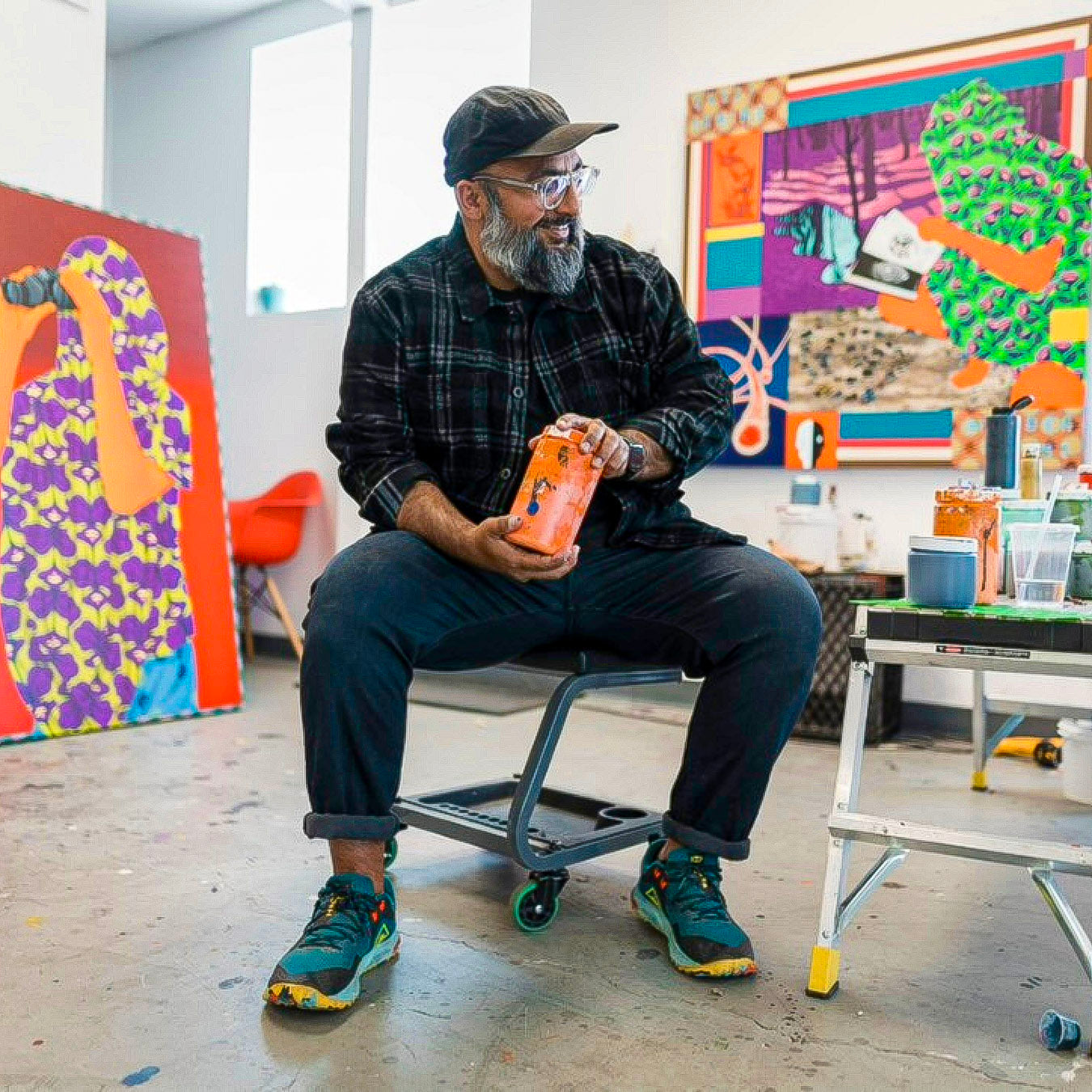 Tehran-born artist Amir H. Fallah (BFA Maryland Institute College of Art, MFA UCLA) is a global phenomenon recognized for his narrative maximalism—crisp, chromatically saturated works that layer veiled figures with meaningful objects, lush botanica, and citations from pop culture, Eastern and Western visual traditions, mythology, folklore, and autobiography. His work has been exhibited at major institutions including The Fowler Museum, Museum of Contemporary Art Tucson, San Diego ICA, and the Nerman Museum of Contemporary Art, with pieces in shows from Athens to Shanghai. Known for their eccentric beauty and mysterious power, his pieces reveal deeper meanings that continue to unfold through contemplation. Fallah's distinctive style unifies diverse cultural and personal narratives into cohesive visual experiences that resonate globally.